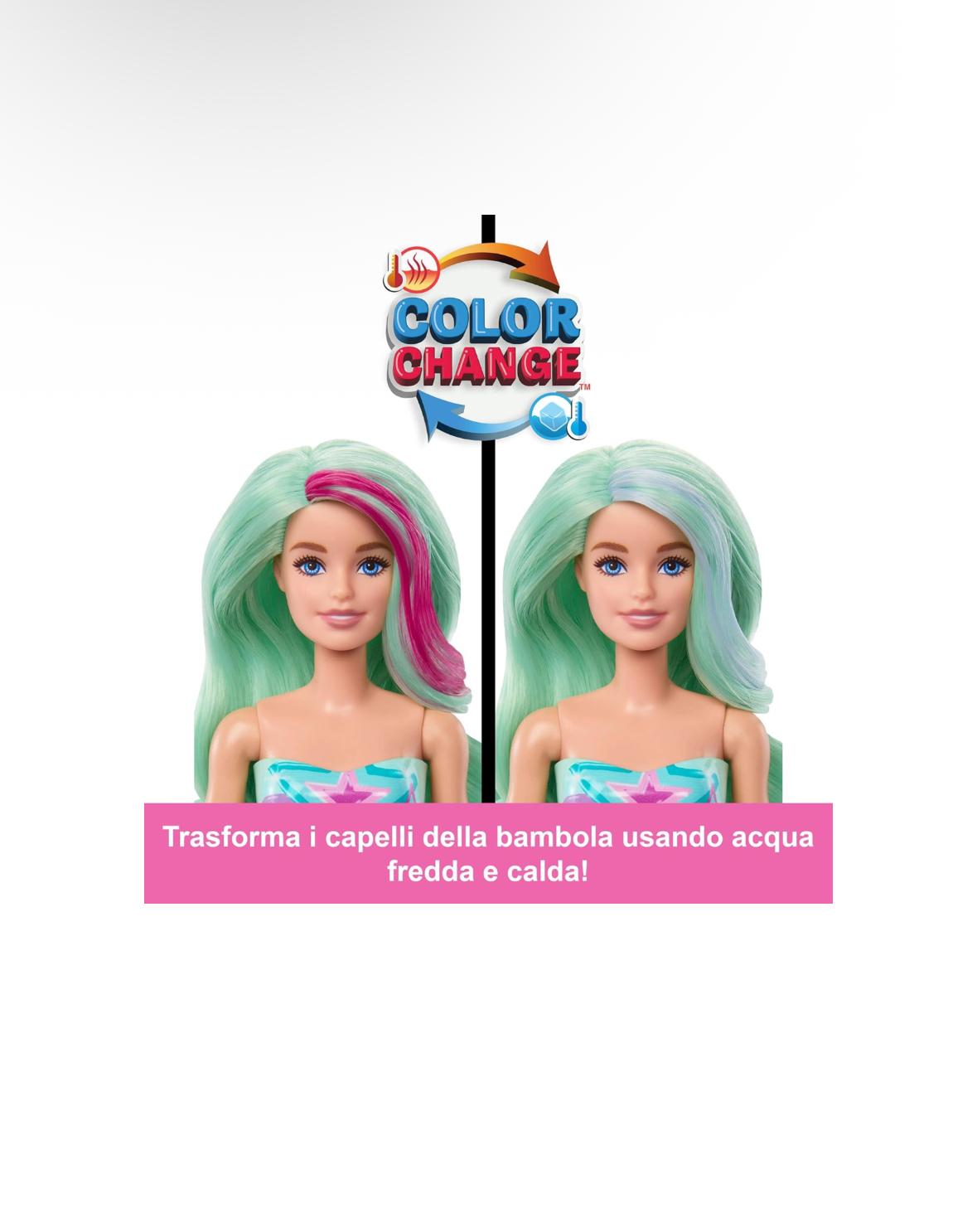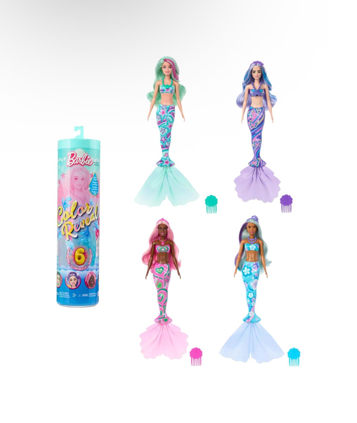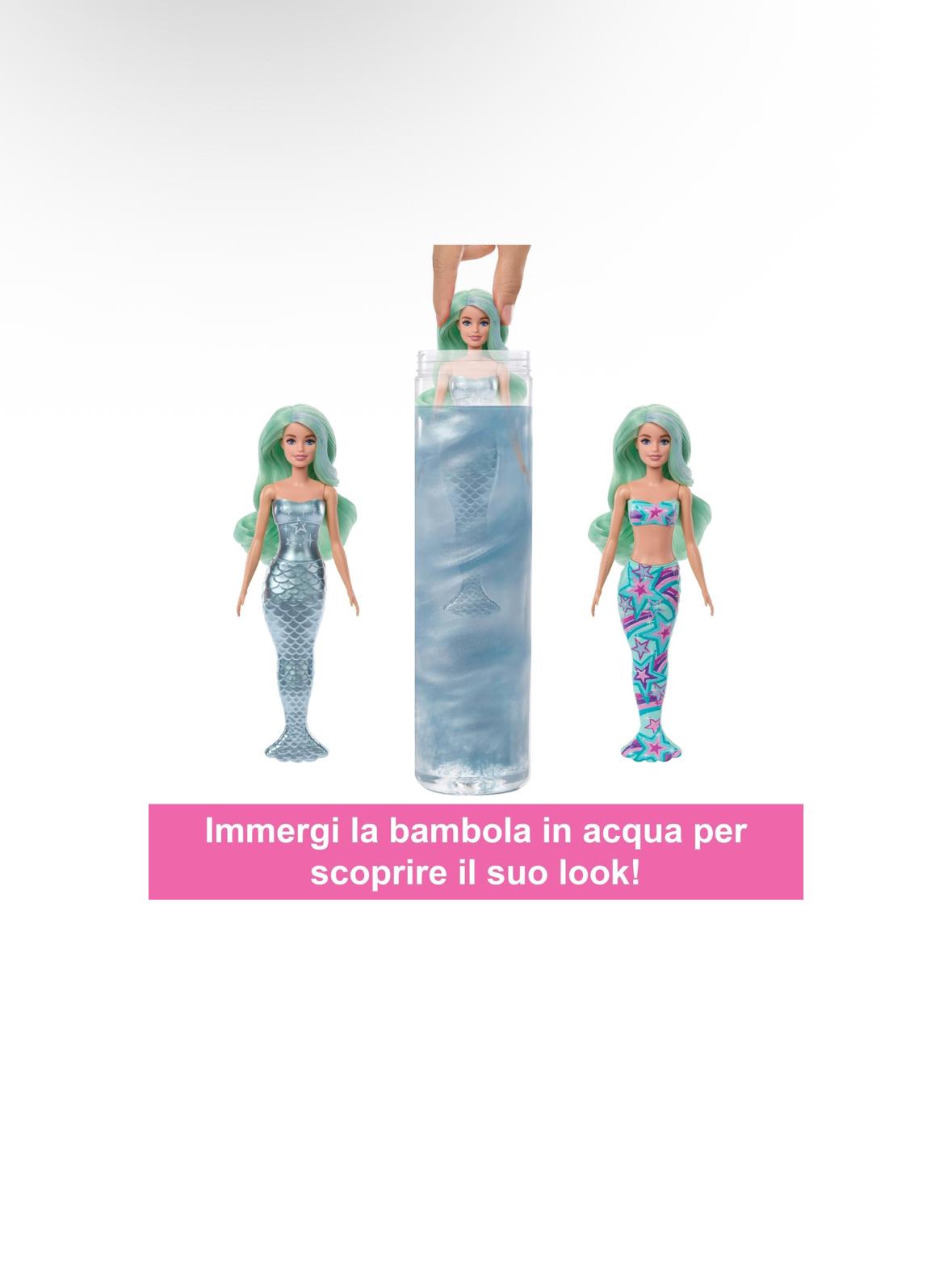 - Con 6 sorprese in ogni confezione di bambole Barbie Color Reveal, il divertimento è assicurato: bambini e bambine adoreranno scoprire la serie sirene con l’innovativa e originale funzione Color Reveal! (194735178766)