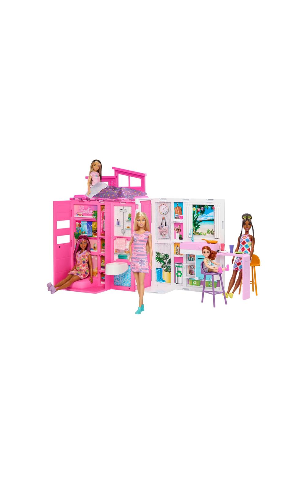 - Barbie – Loft Casa Delle Vacanze, Plyaset con Bambola Bionda Inclusa e 4 Aree di Gioco, 11 Accessori e Tante Stanze Arredate, Giocattolo per Bambini, 3+ Anni. (194735178308)