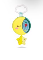 • MELODIE RILASSANTI: Tirando la maniglia a forma di stellina il carillon suona una dolce melodia di Mozart e la lenta rotazione del disco illustrato favorisce il rilassamento del piccolo.