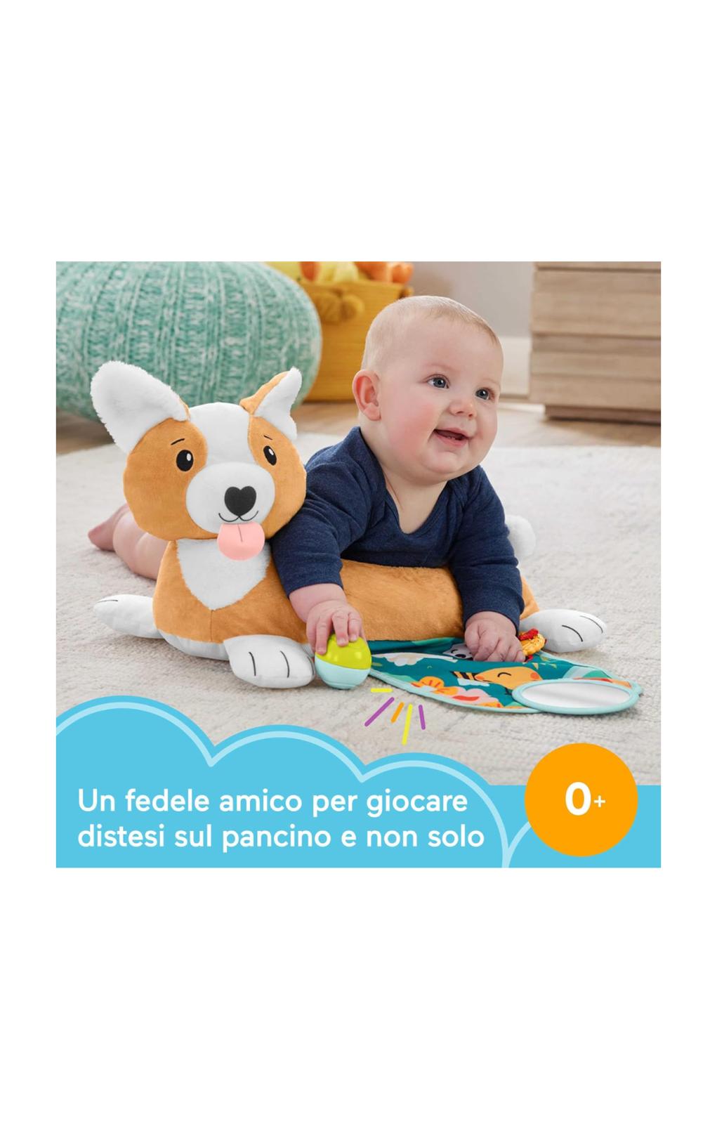 • Fisher-Price – Cuscino Corgi Tummy Time 3 in 1, sostiene Il Bambino in 3 Modi Durante Ogni Fase della Crescita: disteso, Seduto, per Gioco di Ruolo; con 1 specchietto e sonaglino Senza BPA. (194735095896)
