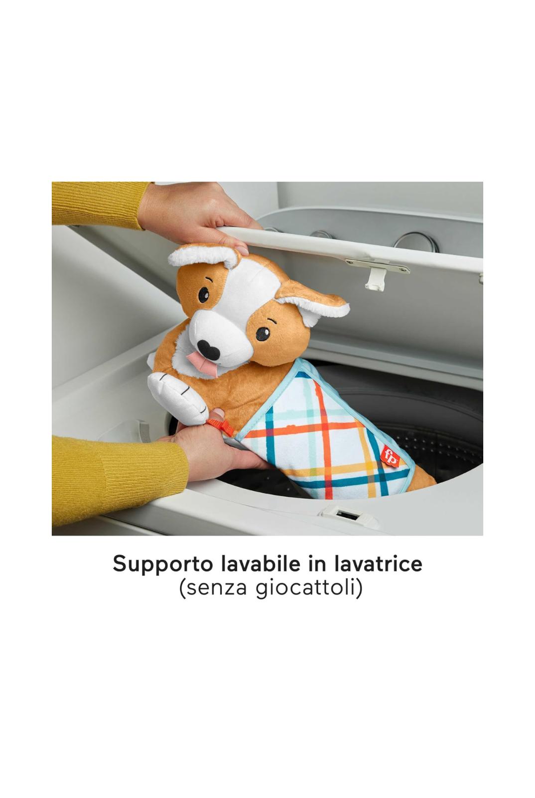 • Il morbido amico cucciolo sostiene il bambino e presenta un pannello scricchioloso con una taschina metti-togli o per riporre il giocattolo.