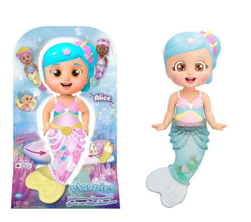 • In totale ci sono 4 diverse bambole Bloopies Shimmer Mermaids da collezionare: Alice, Julia, Taylor e Harper. Ognuna è venduta separatamente.