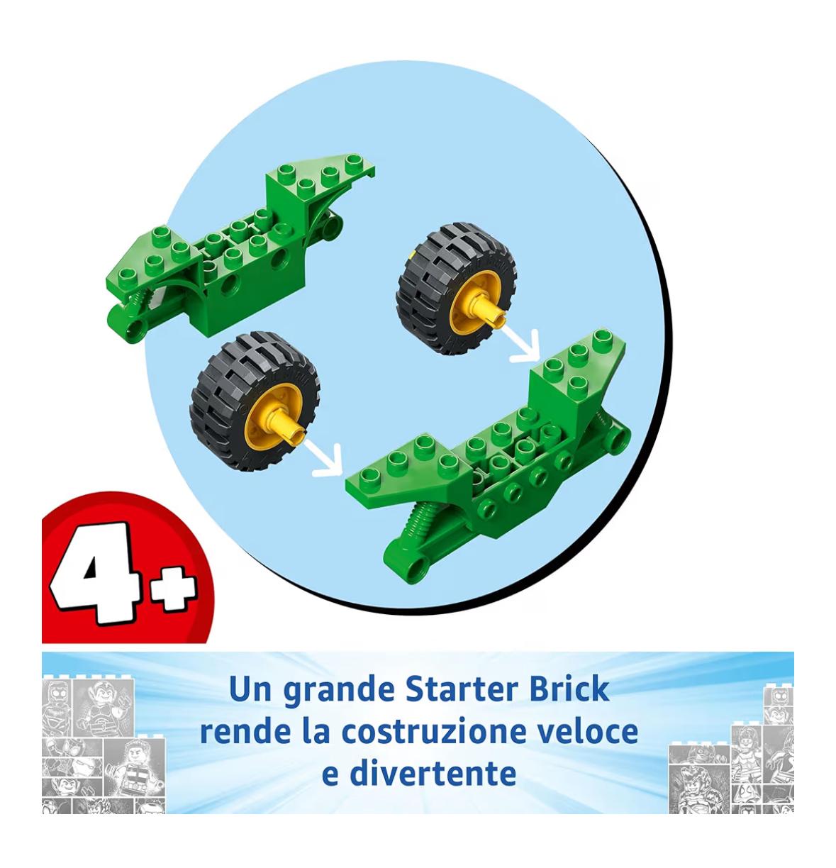 - Giochi educativi LEGO 4+ per migliorare le capacità di risoluzione dei problemi: i piccoli si uniscono a Spin a bordo di un’auto-stegosauro e inseguono Electro sulla sua moto-dilofosauro, dopo che il cattivo ha rubato un prezioso cristallo.