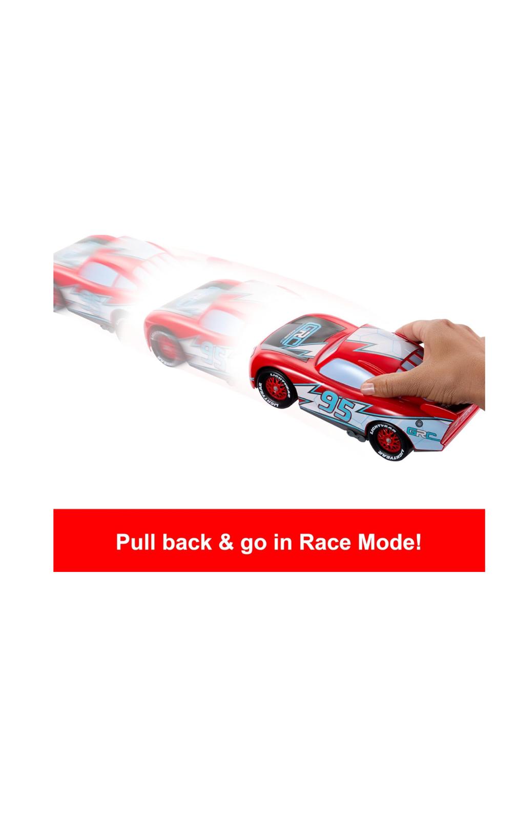 - Premi la parte superiore del veicolo per mostrare lo sguardo da corsa, perfetto per storie ancora più avvincenti! Con una lunghezza di 22,9 cm, il personaggio più amato dai fan prende vita in larga scala!