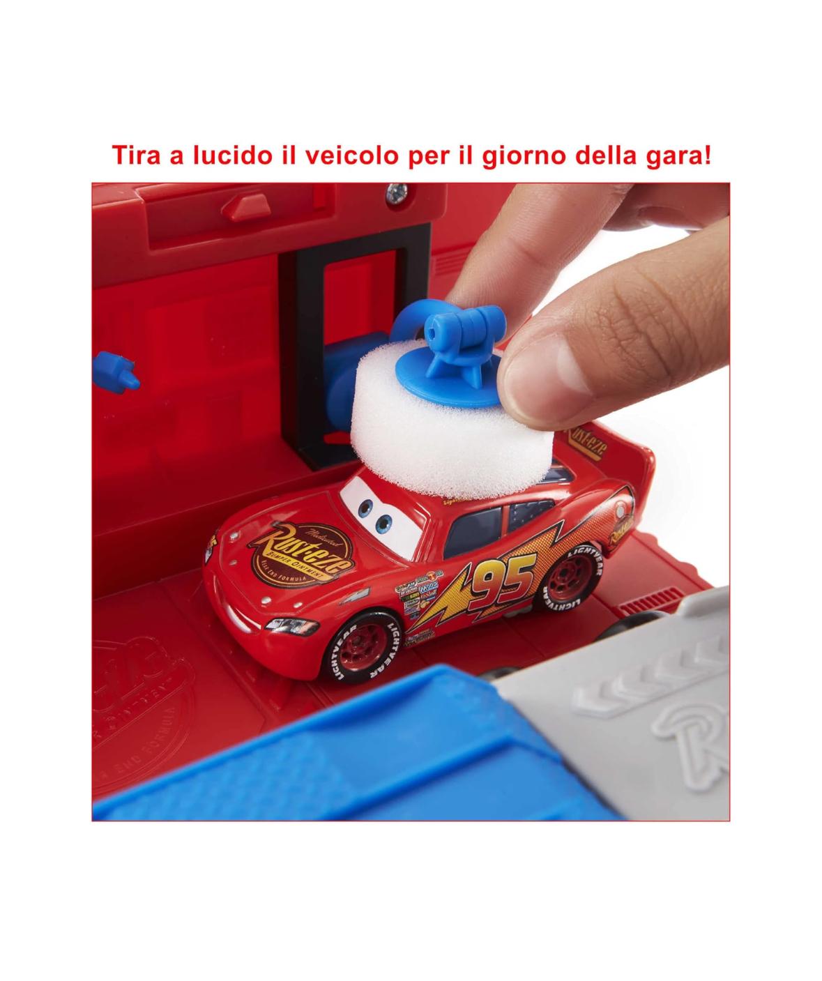 • Apri il rimorchio di Mack per trovare Guido e diverse aree gioco per far sfrecciare di nuovo in pista le auto.