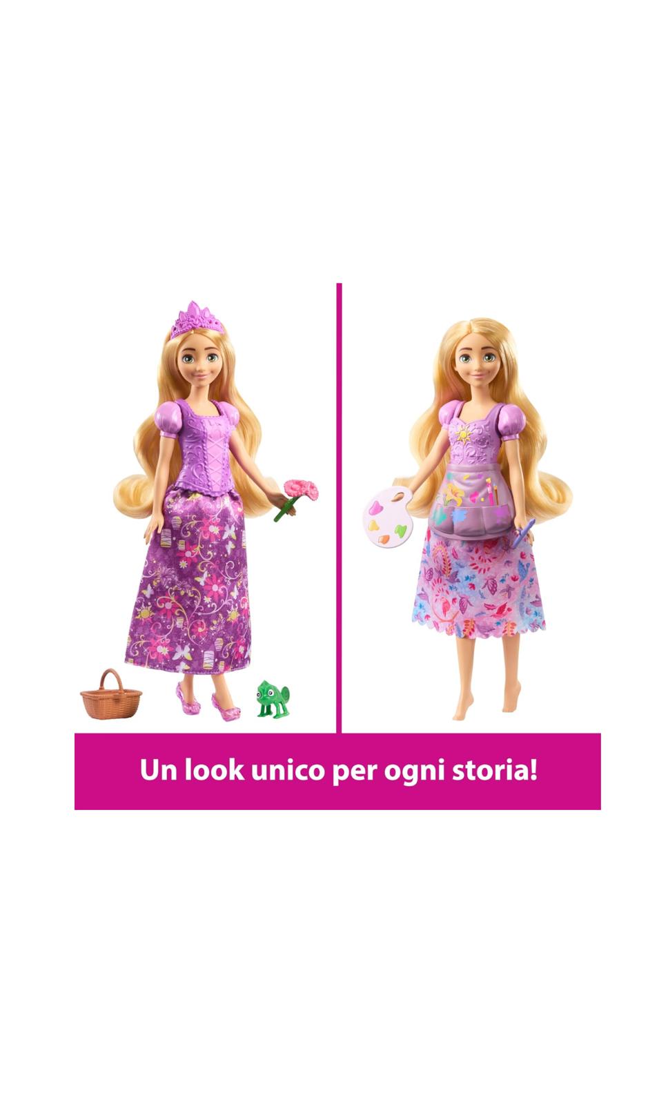 - Il set con bambola alla moda Rapunzel: storie 2 in 1 Disney Princess include abiti a tema e accessori per raccontare due storie uniche!