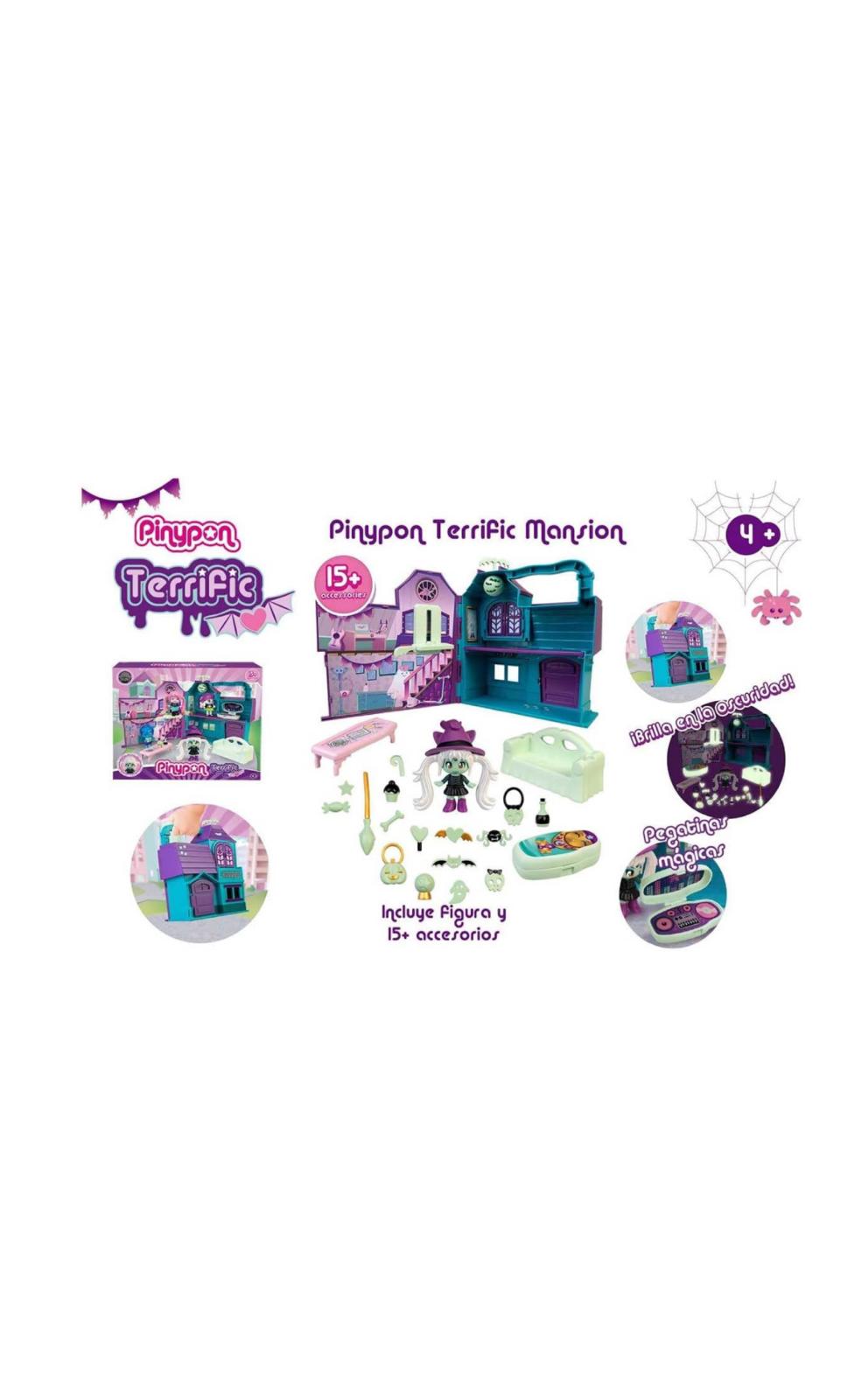 • Pinypon – Terrific Mansion, Playset Pieno di Sorprese e Magia, Include un Personaggio Strega, Con Accessori Che Si Illuminano al Buio. (8056379152019)