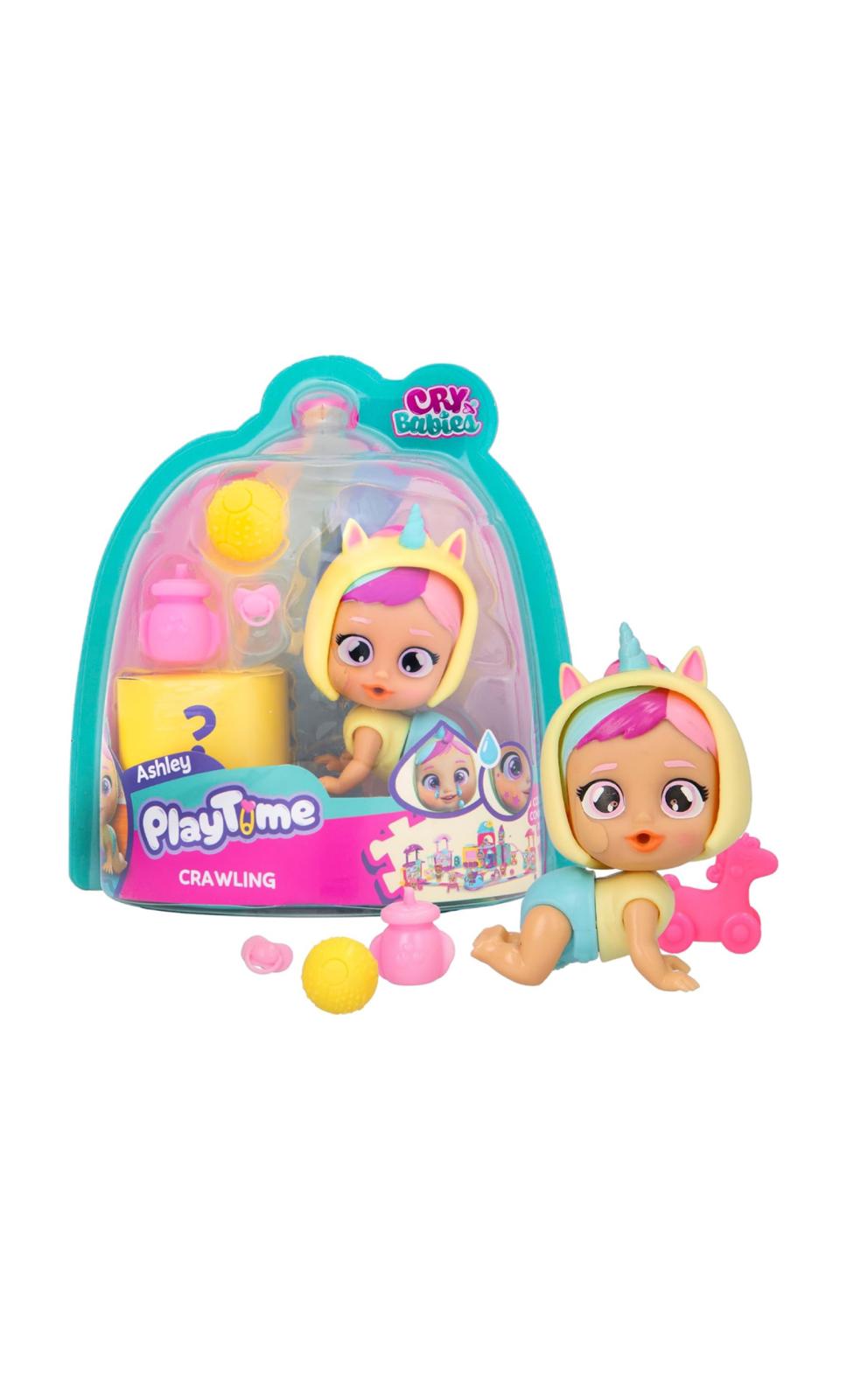 - PLAYTIME CRY BABIES Day Care Ashley, Bambola Gattonanti da Collezione Day Care Babies, con 5+ Accessori, che Piangono Lacrime Vere con Funzione Magica, Bambini dai 4 ai 6 Anni.(8421134923119)