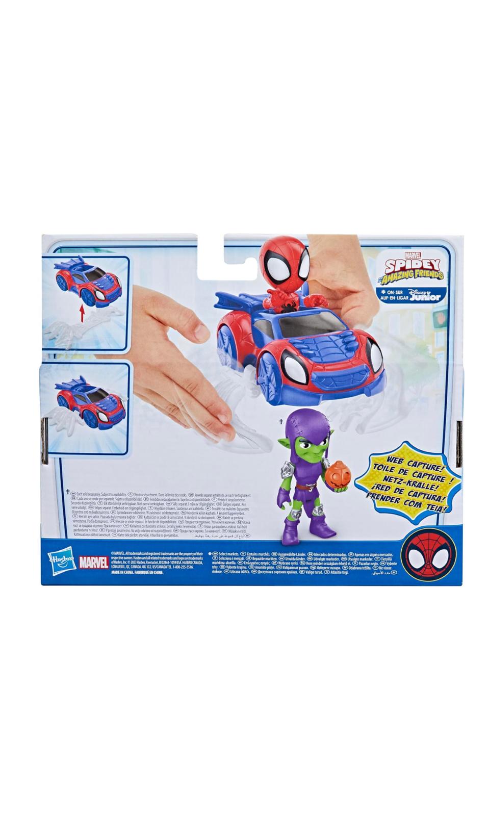 • Il set Spidey Web Crawler include un’action figure di supereroe in scala da 10 cm, un veicolo e un accessorio ragnatela.
