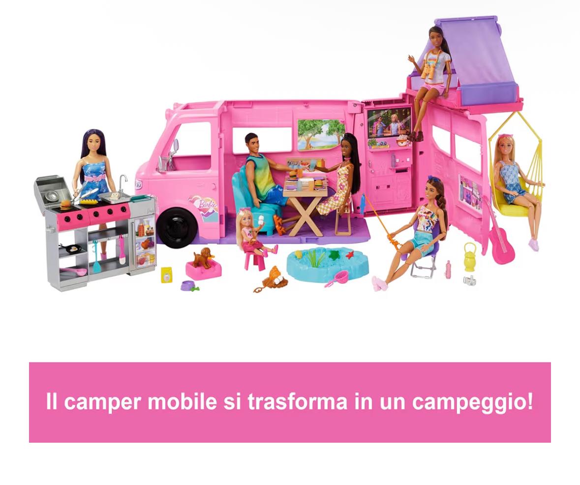 - Il playset Barbie Camper dei Sogni presenta 7 aree di gioco e più di 60 accessori, tra cui un cucciolo, per ispirare infinite storie da campeggio!(194735178384)