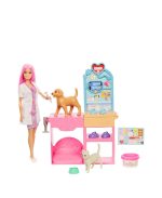 - Barbie – Clinica Veterinaria di Pronto Soccorso, Set con Bambola dai Capelli Rosa, Arredamento, Pasta modellabile e 10 Accessori a Tema Inclusi, Giocattolo per Bambini, 4+ Anni. (194735308309)