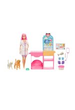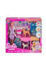 - l playset Barbie Clinica Veterinaria di Pronto Soccorso con bambola ispira gli amanti degli animali a seguire la propria vocazione di veterinario con un lettino per le visite, un cagnolino, un gattino e oltre 10 accessori per divertirsi!