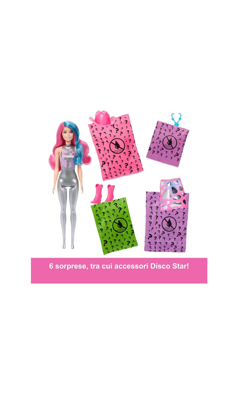 - Con 6 sorprese in ogni confezione di bambole Barbie Color Reveal, il divertimento è assicurato: bambini e bambine adoreranno scoprire la serie Disco Star con l’innovativa e originale funzione Color Reveal!