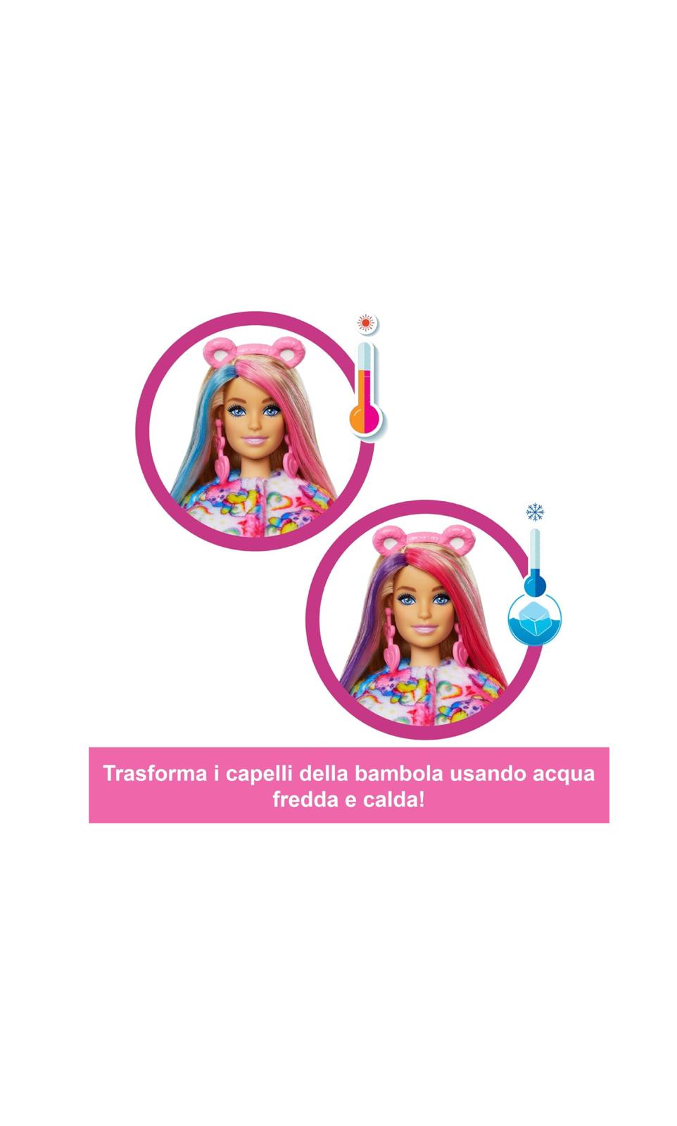 - Usa acqua fredda e calda per trasformare il viso della bambola Barbie con dettagli scintillanti: ripeti l’effetto tutte le volte che vuoi