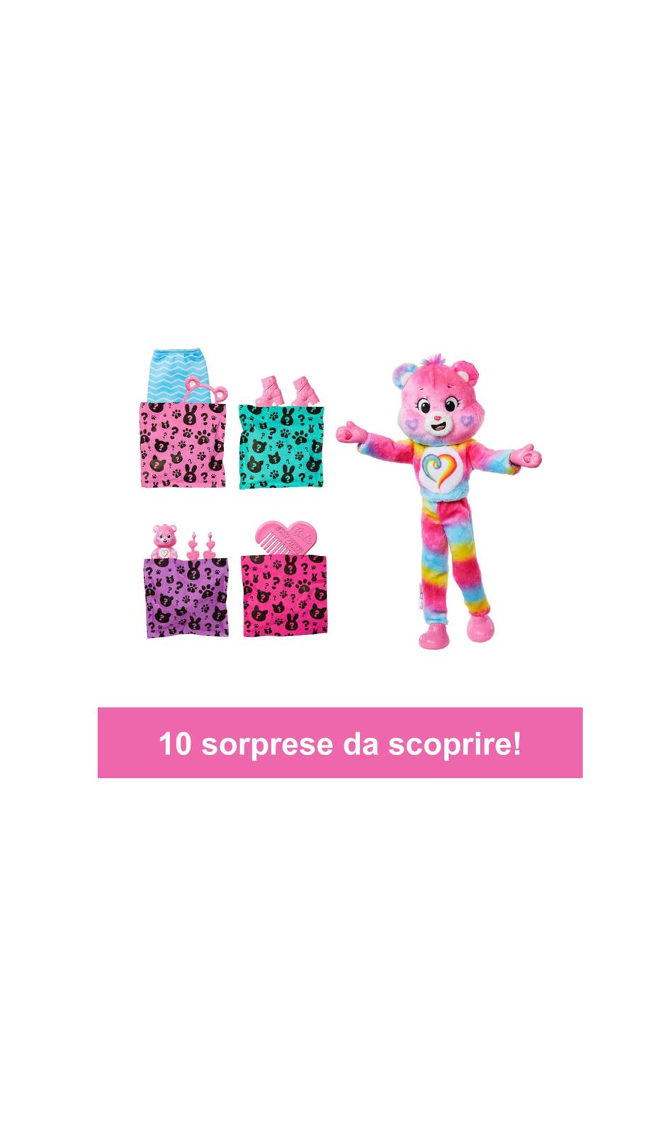 - Con 10 sorprese da scoprire, le bambole Barbie Cutie Reveal Care Bears offrono ai bambini un’esperienza entusiasmante, ricca di amici di peluche, abiti dolci e divertenti trasformazioni