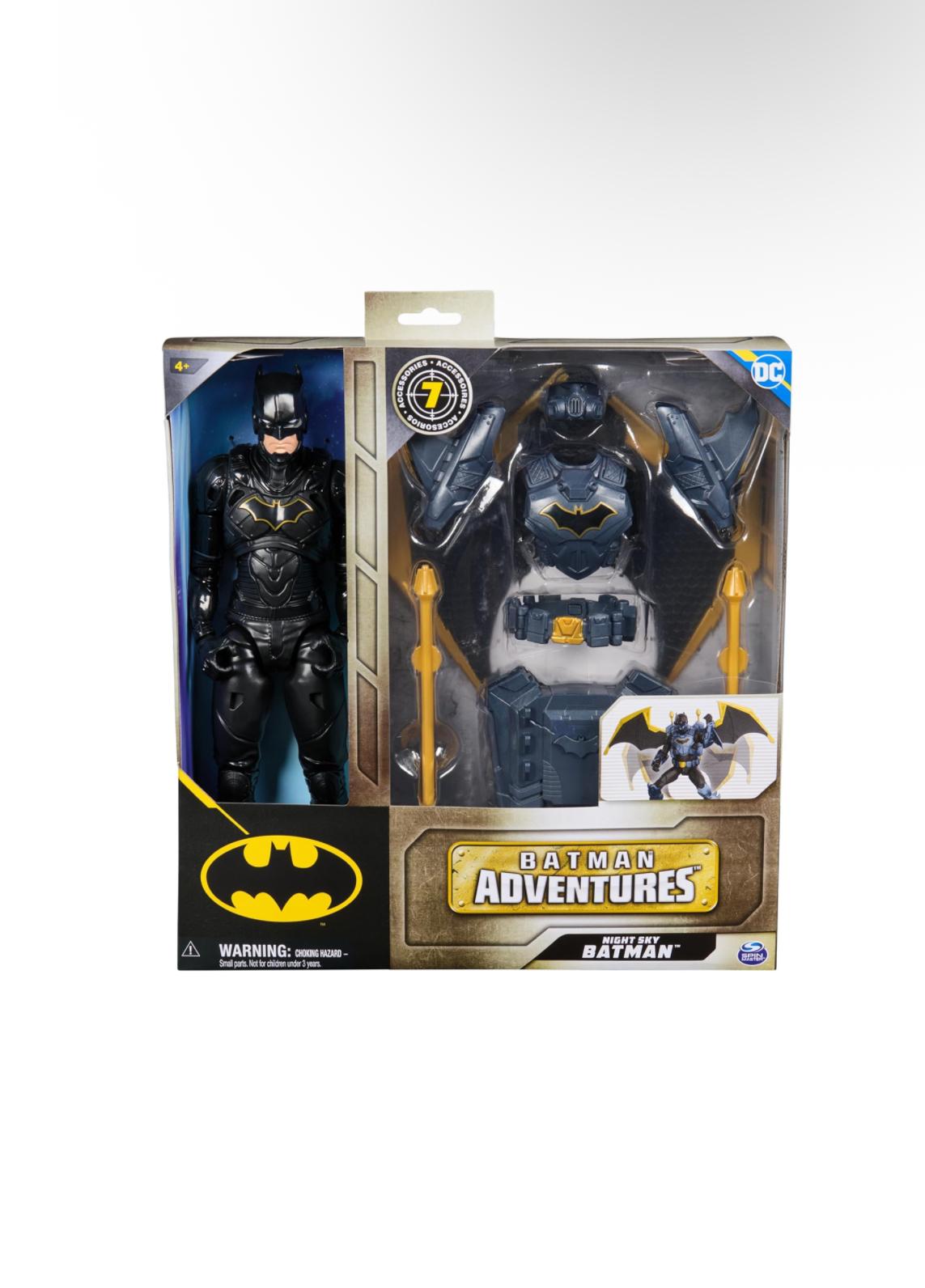 - PERSONAGGIO BATMAN ADVENTURES: vola in azione con Batman Night Sky in scala 30 cm, completo di 7 pezzi armatura intercambiabili e ali che si aprono per inventare storie e giocare senza sosta. (681147026223)
