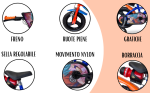 - Stabilizzatori, scudo frontale, borraccia.