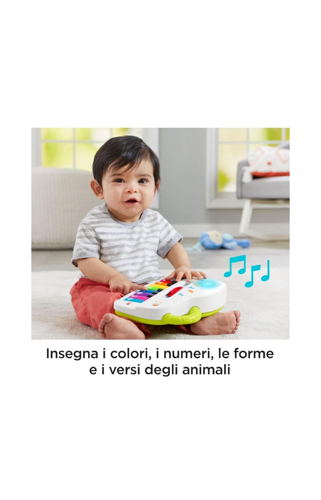 • Fisher-Price – Pianoforte di Cagnolino Ridi & Impara, Pianoforte Giocattolo Portatile con Luci, Musica, Versi degli Animali,Educativi, 6+ Mesi, Edizione Inglese+Italiano+Portoghese+Spagnolo. (194735078554)