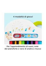• Fai scorrere la levetta per alternare le diverse modalità di gioco: note di pianoforte vere, versi dell’anatra o della mucca oppure contenuti d’apprendimento.