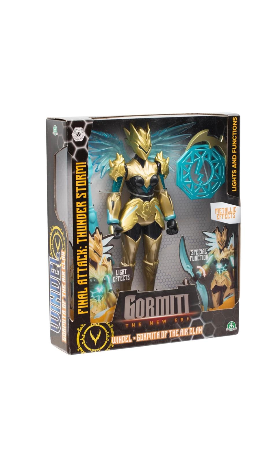 - Gormiti The New Era – Gormita Windel Skye Con Funzione Luce E Attacco, Action Figure 27 Cm Articolato, Armatura Oro Nera E Accessorio Chakra Energetico, Per Bambini A Partire Dai 3 Anni. (8056379174592)