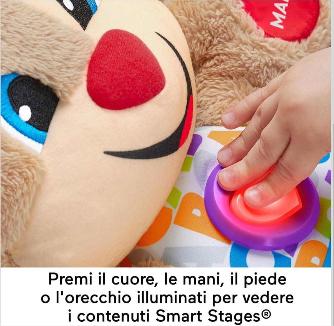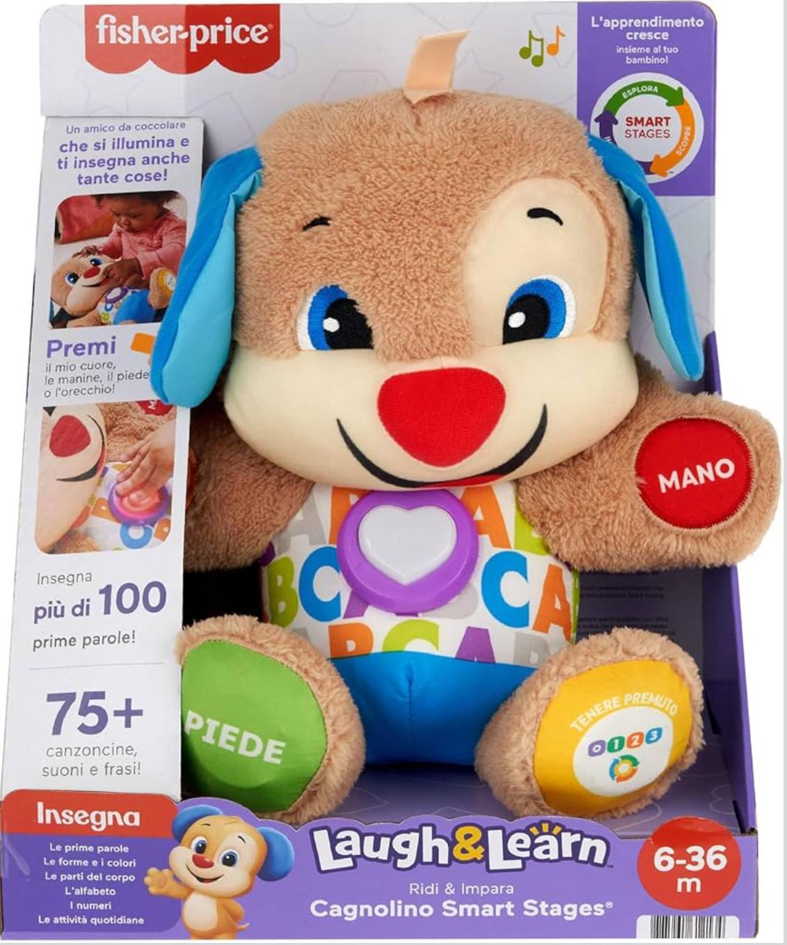- Fisher-Price – Il Cagnolino Smart Stages Ridi & Impara, morbido peluche educativo per imparare le prime paroline, con 75+ canzoni, luci e melodie, 6+ mesi, Versione italiana. (887961612134)