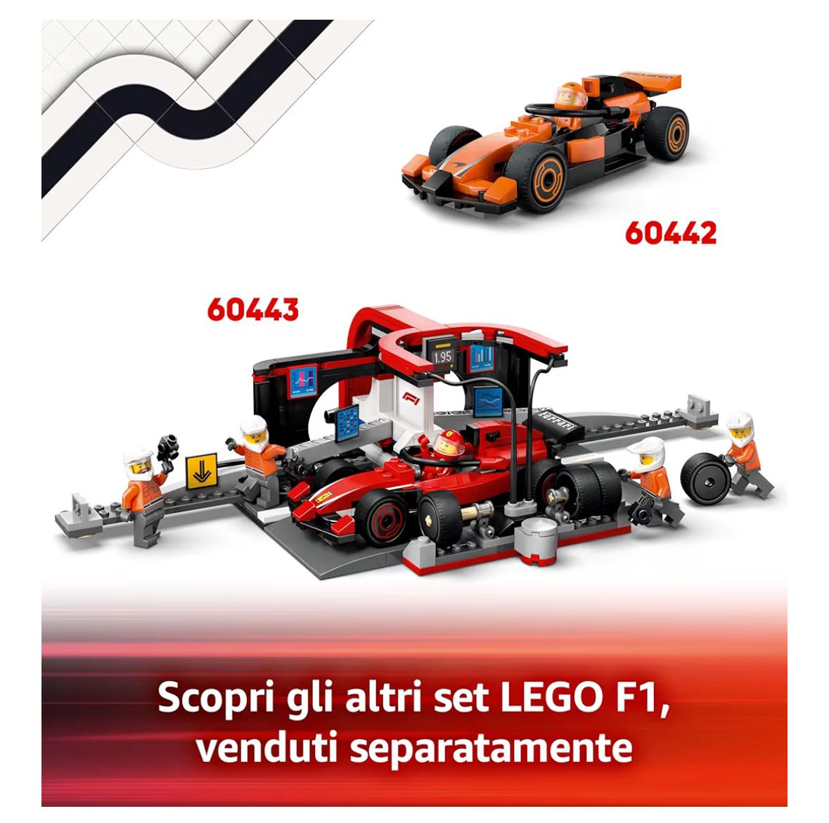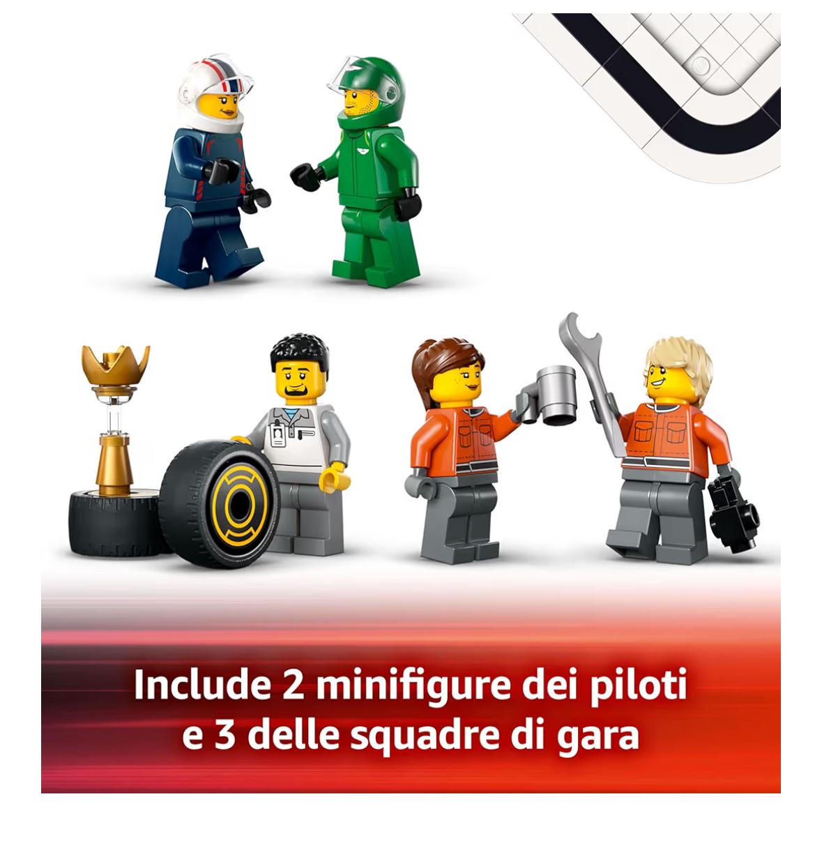 • Scopri il mondo della Formula 1 a tutta velocità: cerca le altre costruzioni LEGO City a tema F1 (disponibili separatamente), per tante gare con la famiglia e gli amici.