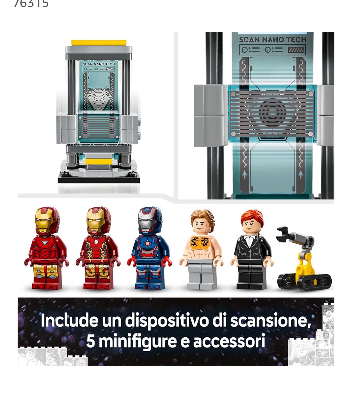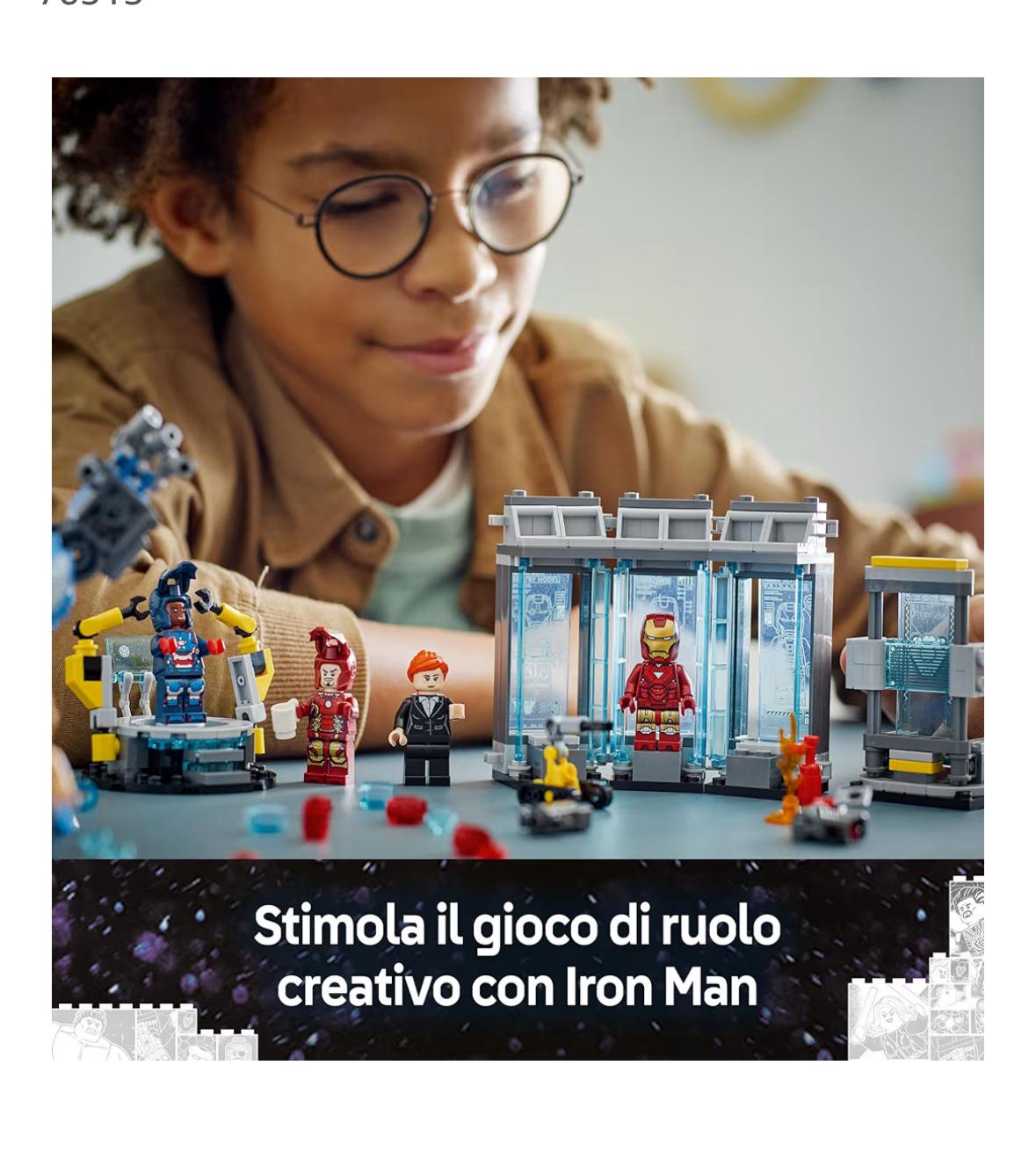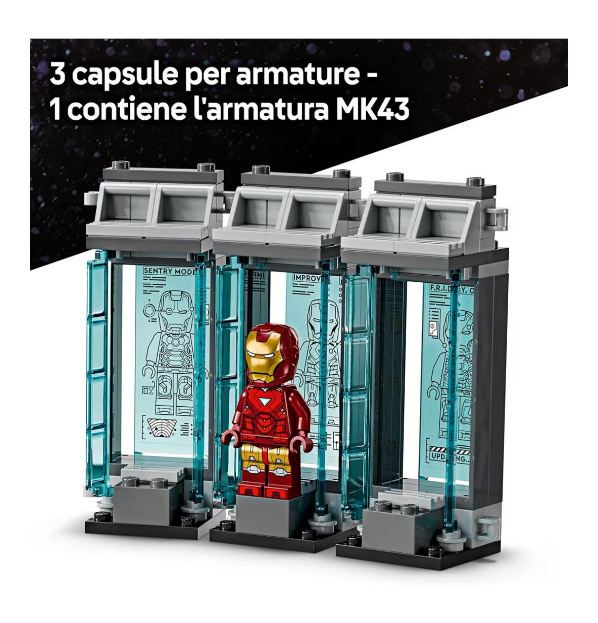 - Laboratorio di Iron Man giocattolo LEGO | Marvel: il Laboratorio di Iron Man: Sala delle Armature è un set di giocattoli Avengers da costruire e da esporre, un divertente gioco per bambini e bambine da 8 anni in su fan dei Supereroi. (5702017817880)