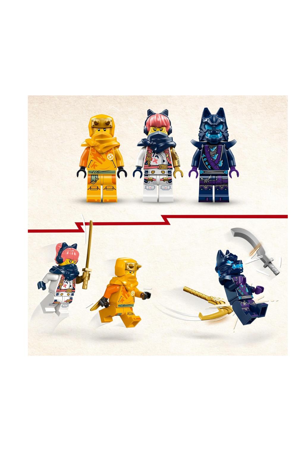 • 3 minifigure degli eroi LEGO NINJAGO: il set di giochi d’azione ninja include Arin armato di gancio e katana, Sora con una katana e un Guerriero Maschera del Lupo con una spada giocattolo.