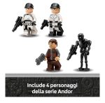 - 4 minifigure LEGO Star Wars: questo set di giochi include i personaggi di Cassian Andor e Dedra Meero, ciascuno con una pistola blaster, una minifigure LEGO dell’agente tattico ISB e un droide LEGO K-2SO, ognuno con un blaster