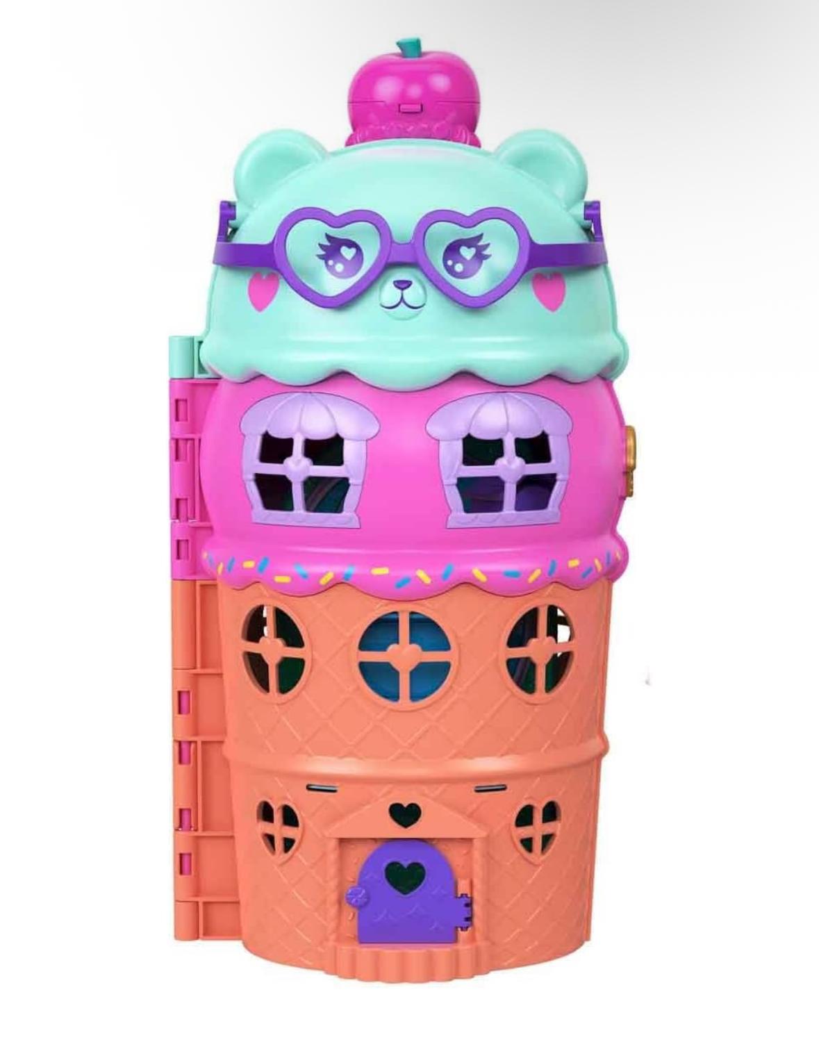 • La Polly Pocket Gelato House ha la forma di un cono gelato con un adorabile tema orso.